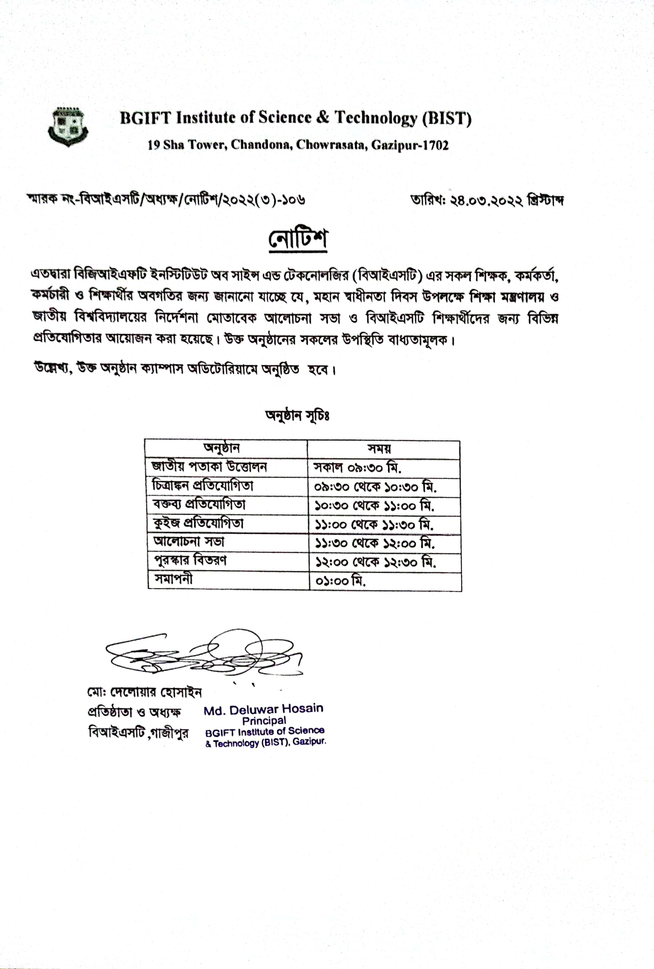 মহান স্বাধীনতা দিবস উপলক্ষে জরুরি বিজ্ঞপ্তি