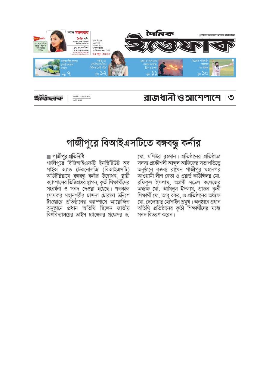গাজীপুরে বিআইএসটিতে বঙ্গবন্ধু কর্নার