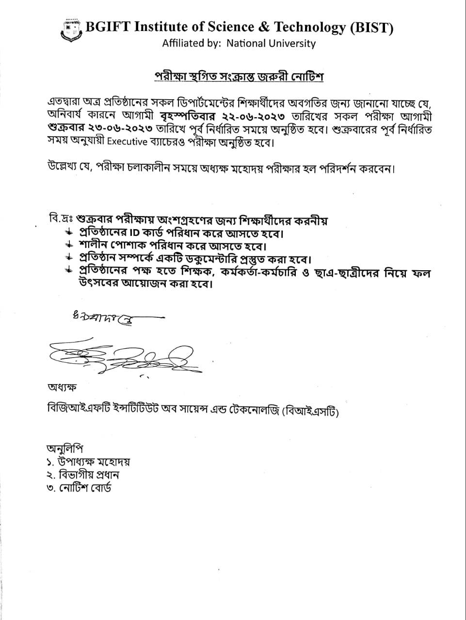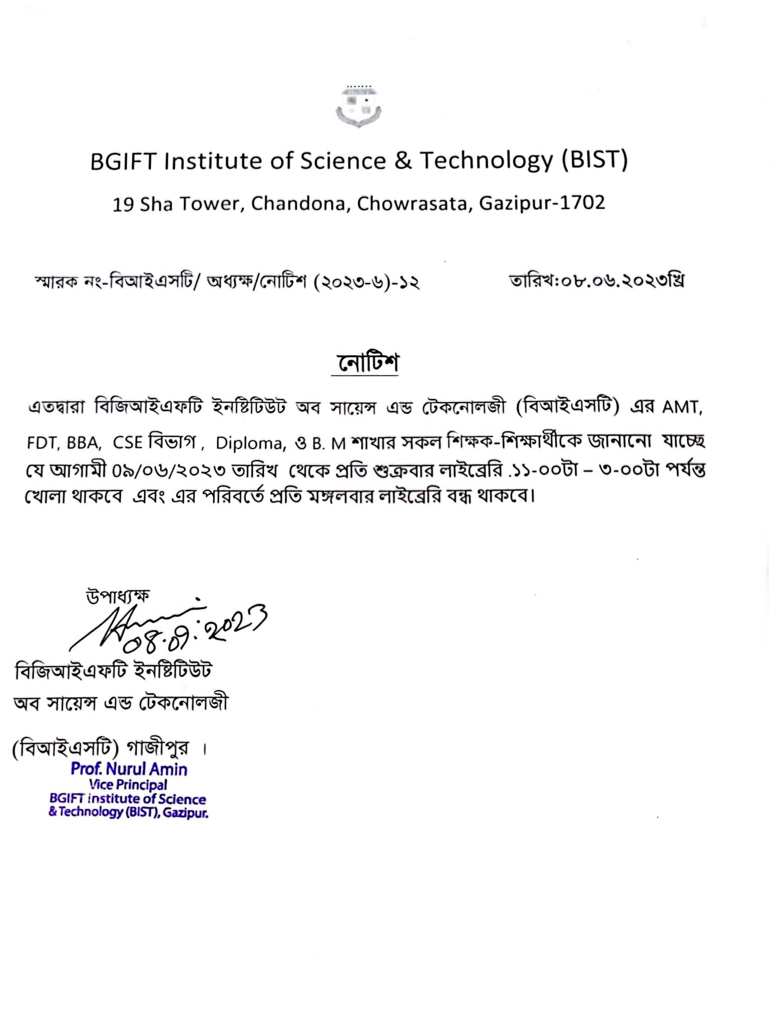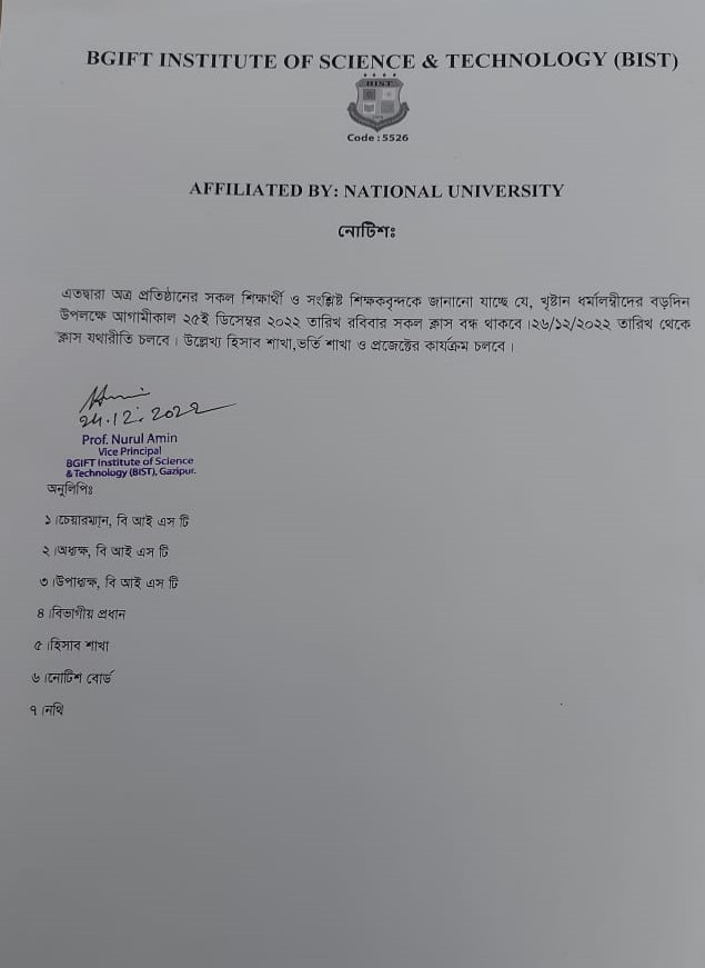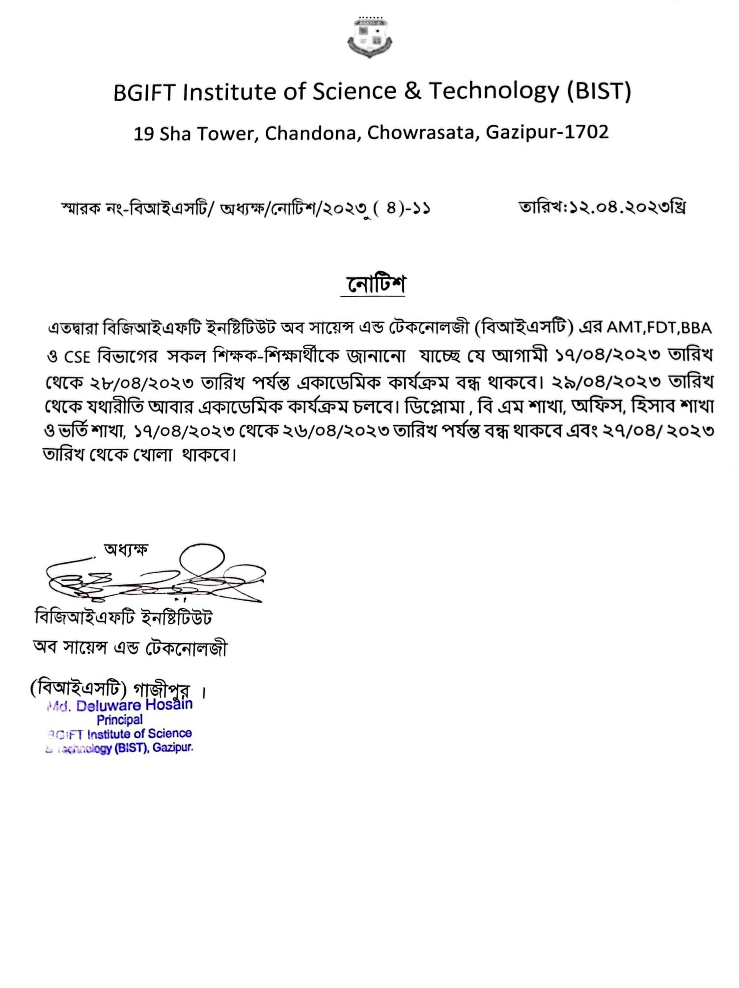 পবিত্র বিশ্ব ইজতিমা-মোনাজাত ও স্বরস্বতী পূজাঁ উপলক্ষে আগামী ০২/০২/২০২৫ ও ০৩/০২/২০২৫ খ্রিঃ তারিখ দুই দিন বিআইএসটি বন্ধ থাকবে